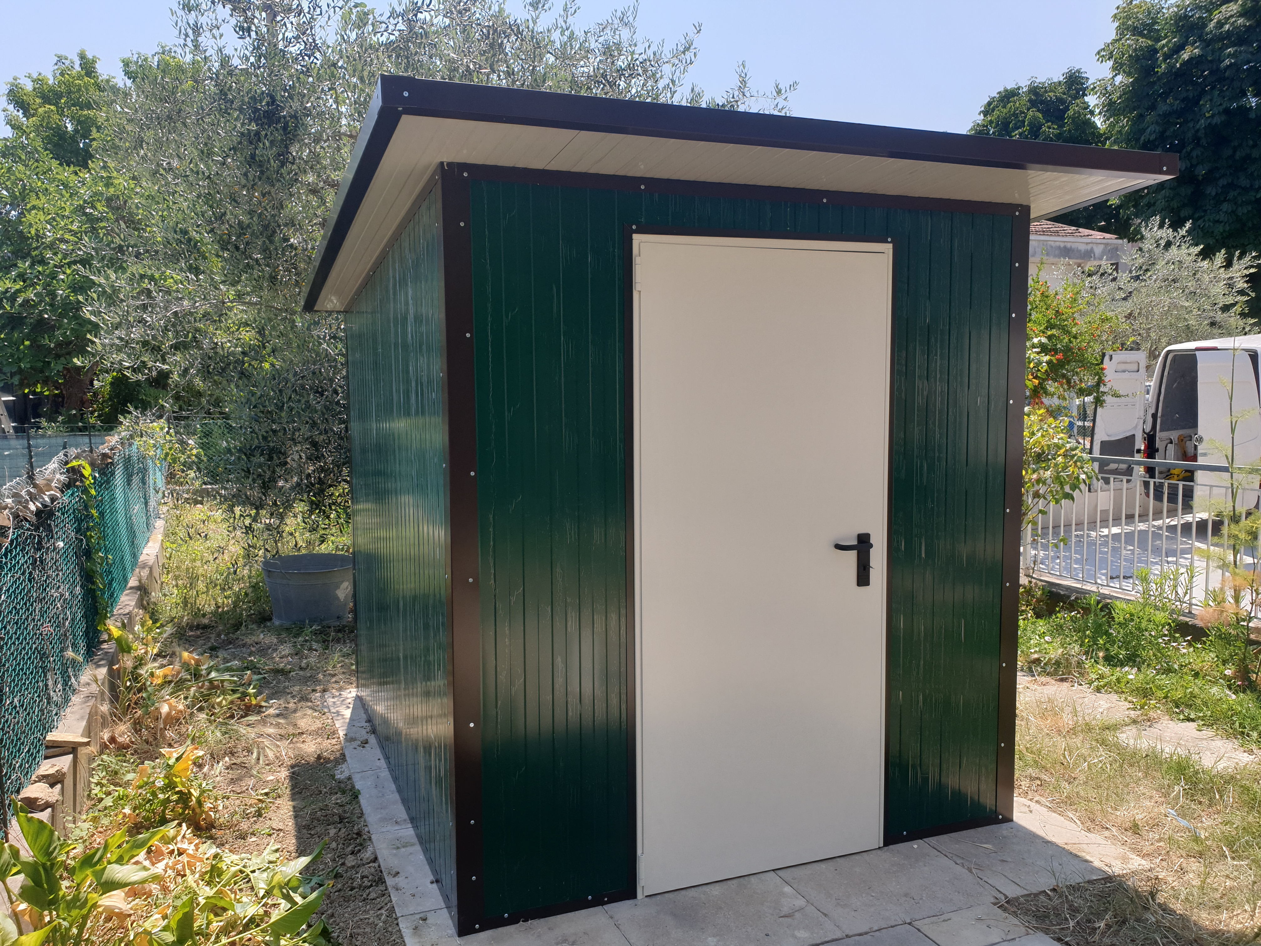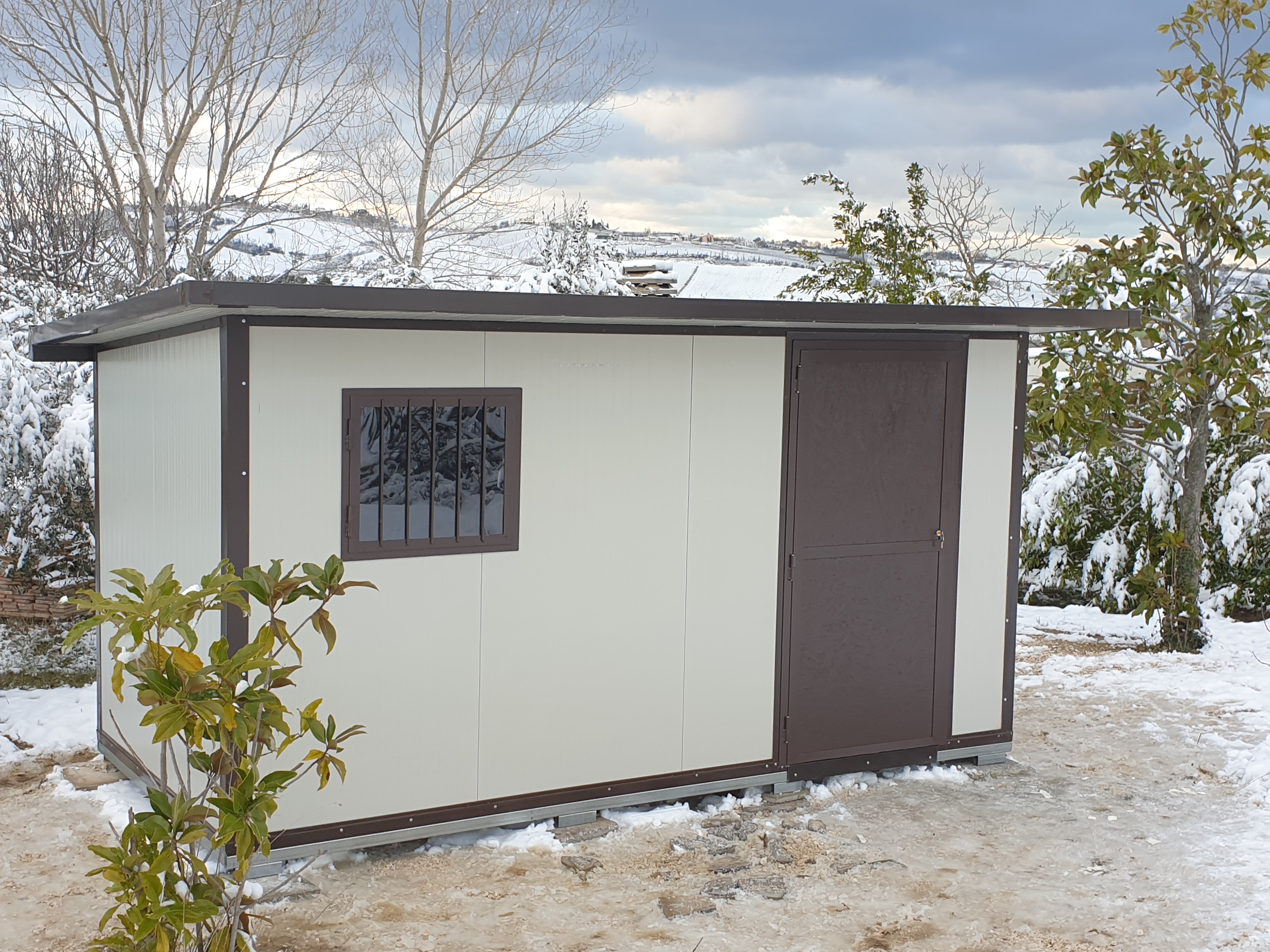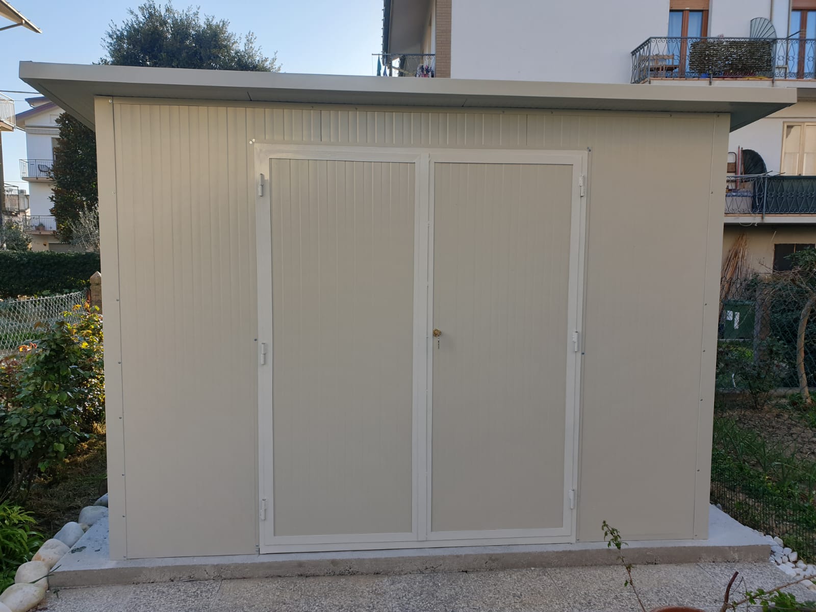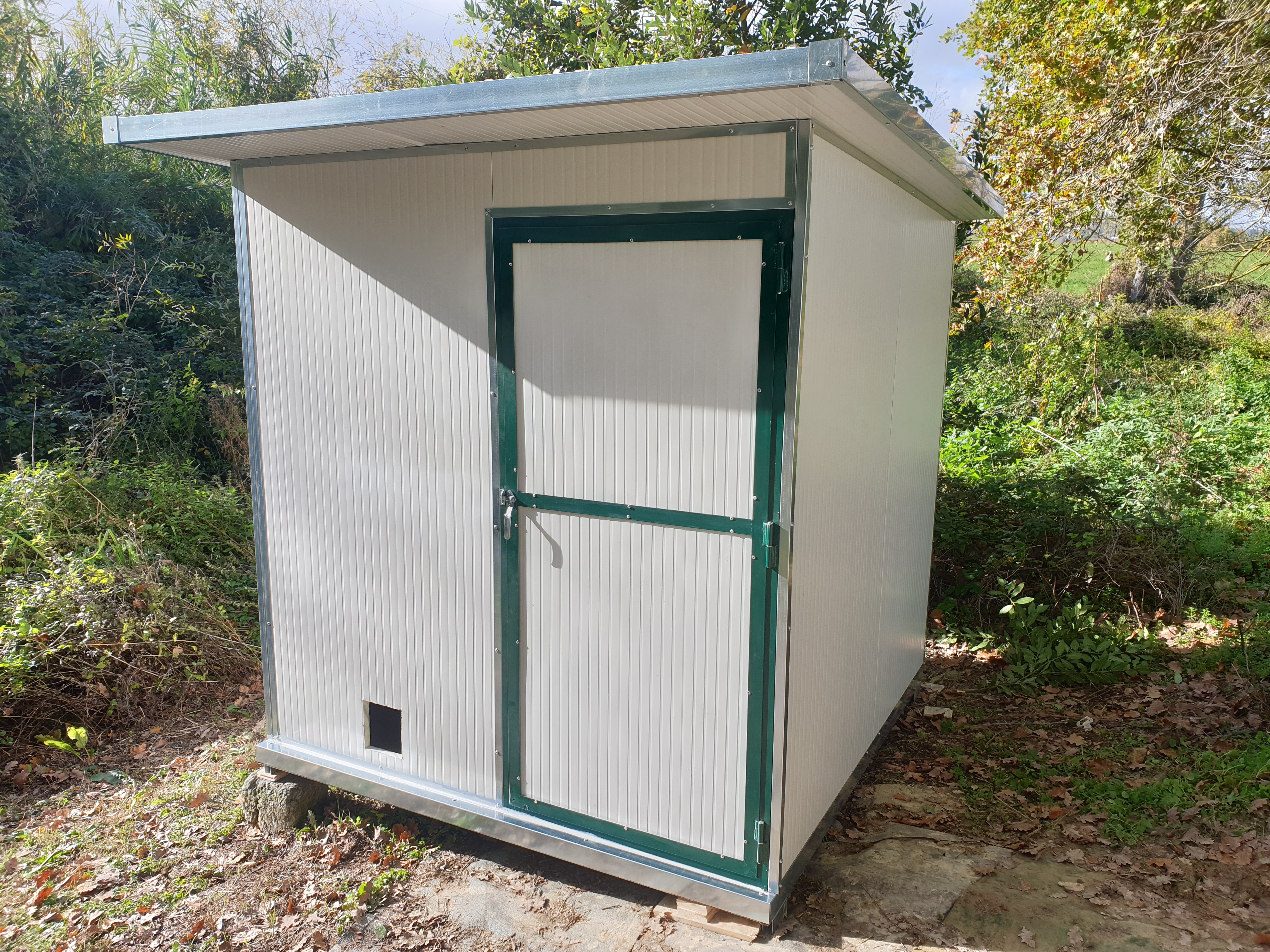 Box in coibentato 2x2 mt in coibentato da giardino per rimessaggio attrezzi, amovibile e pedanato.