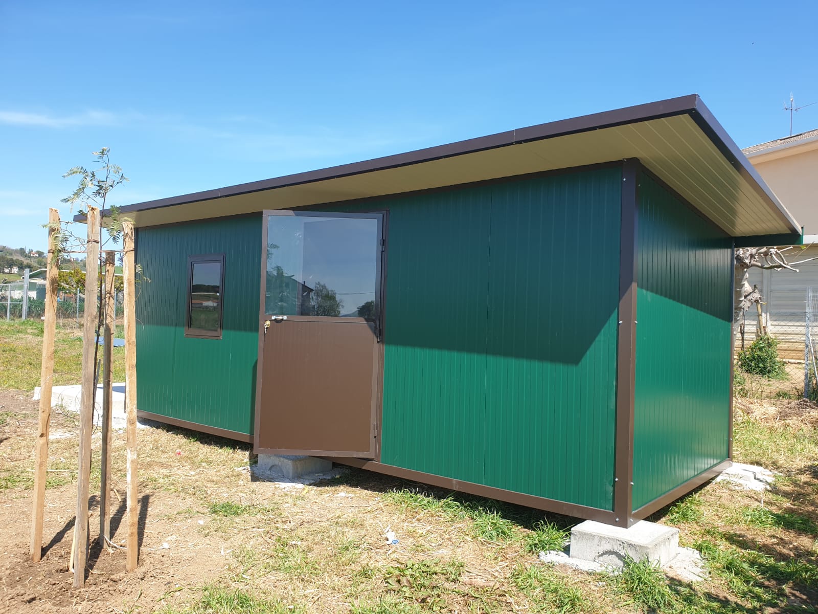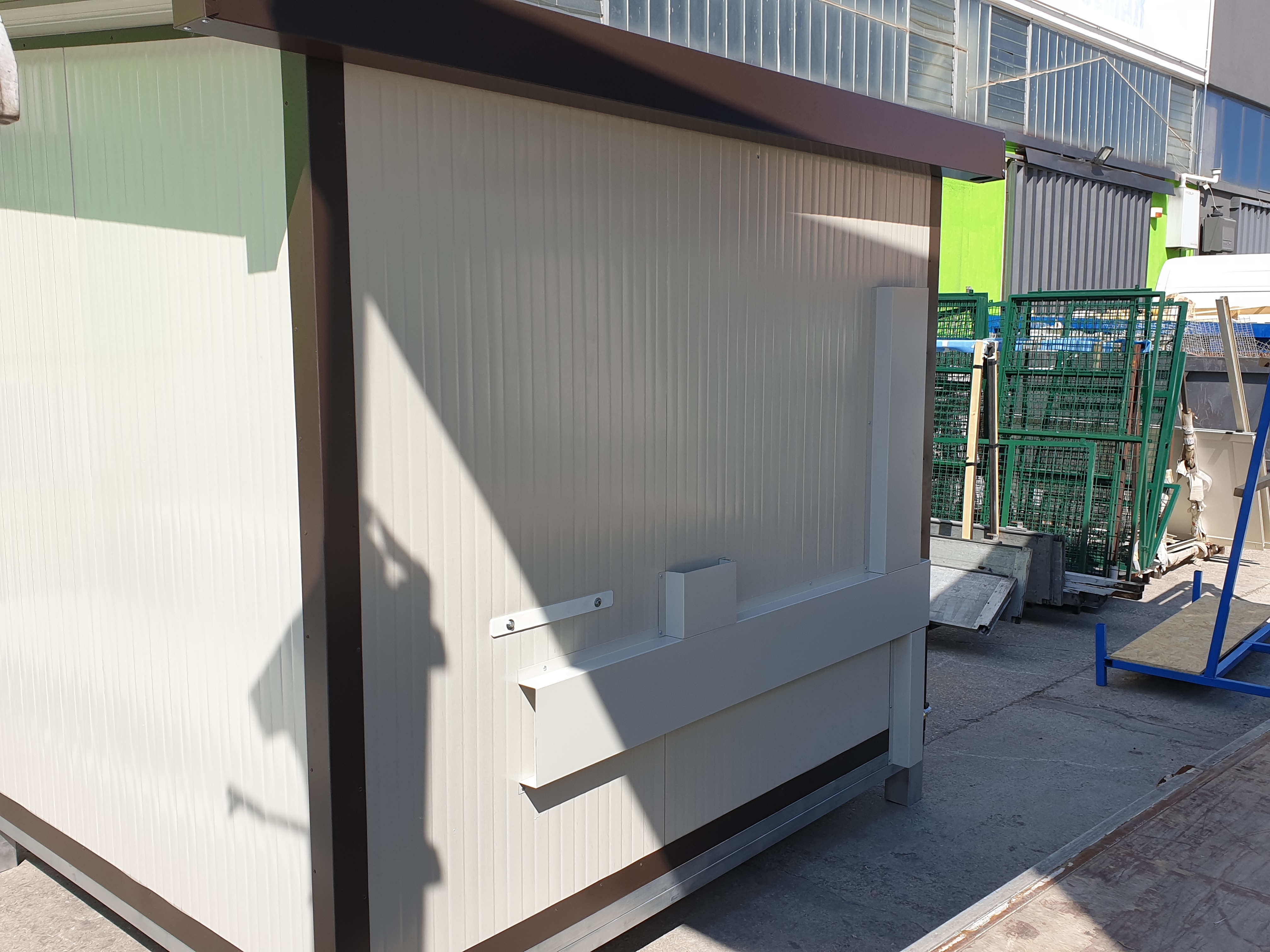 Box da esterno 2x3 mt, con pannello coibentato 40 mm verde e profilature con lamiera pre verniciata testa di moro, porta taglia fuoco reversibile REI 60.