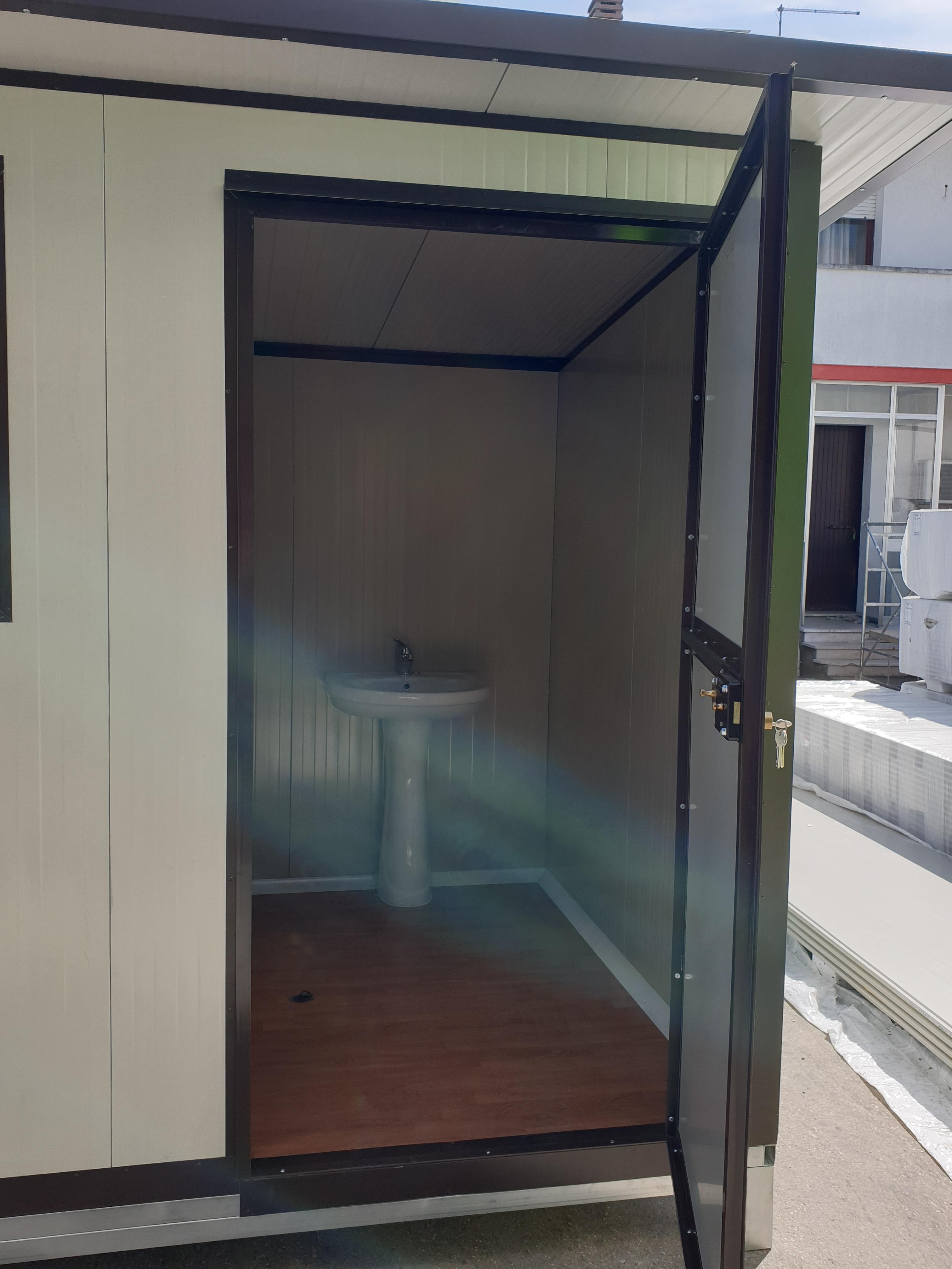 Servizio igienico da esterno in coibentato 2,50x2 mt, completo di sanitari e impianto di carico e scarico acque.